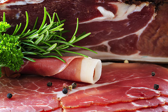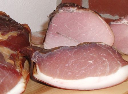 Ein Spitzenprodukt in unserem Hofladen ist der „Otterstaler Rohschinken“. Ein fein marmorierter Schinken, der luftgetrocknet über 6 Monate reift. (Foto)